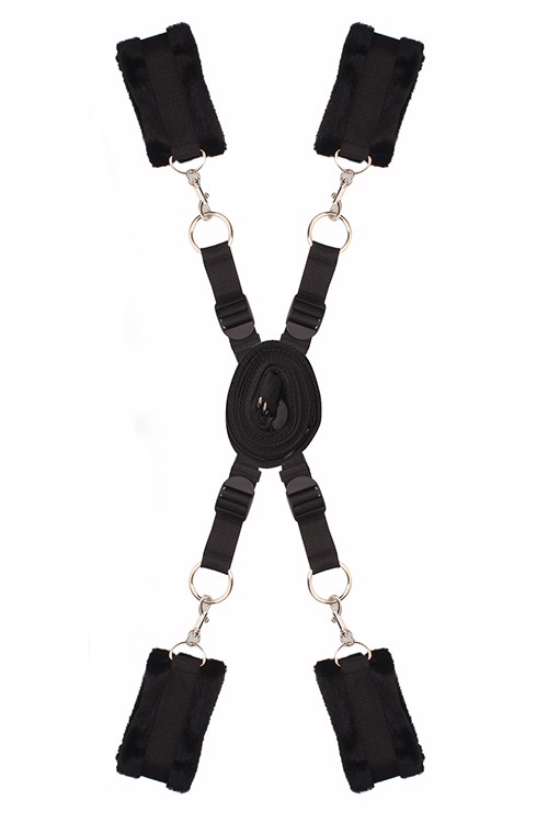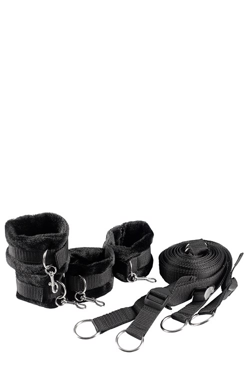 Ремни можно отрегулировать по размеру кровати с помощью пластиковых пряжек. Манжеты изготовлены из искусственного меха, мягкие и пушистые, удобные для ношения, с застежками на липучках. Они прикрепляются к уплотнительным кольцам ремешков с помощью удобных