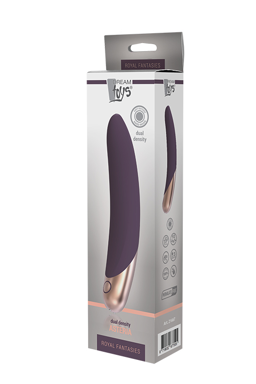 Asteria - это элегантный вибратор из мягкого силикона и АБС с блестящей металлической основой. Гладкий ствол имеет слегка гибкий наконечник и изогнутую форму, что отлично подходит для стимуляции точки G. Особенностью этого вибратора является двойная плотность, что означает, что сердцевина твердая, а внешняя часть вибратора более мягкая. Это позволяет во время игры с Asteria чувствовать себя как с настоящим парнером. Мощный мотор предлагает 3 уровня устойчивой вибрации и 7 различных ритмов. Благодаря своей водонепроницаемости этот девайс приглашает Вас насладиться незабываемыми ощущениями в душе или ванной. Размеры: диаметр 3,9 см, длина 21 см. Двойная плотность. 1 Мощный мотор. 10 моделей вибрации. Удобная кнопка управления одним касанием. Водонепроницаемый IPX7. Магнитный USB-аккумулятор, время зарядки 3 часа. Изготовлен из безопасного для тела силикона и АБС. Не содержит фталатов.