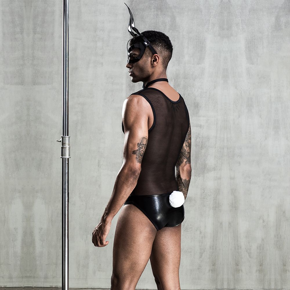 Рекомендуємо придбати чоловічий еротичний костюм Зайка Джонні з маскою - сміливий наряд для сексуальних і впевнених у собі чоловіків! Лакова маска з вухами, боді зі шнурівкою і еротичний метелик створять образ мачо, завжди готового до яскравого і довгого сексу.