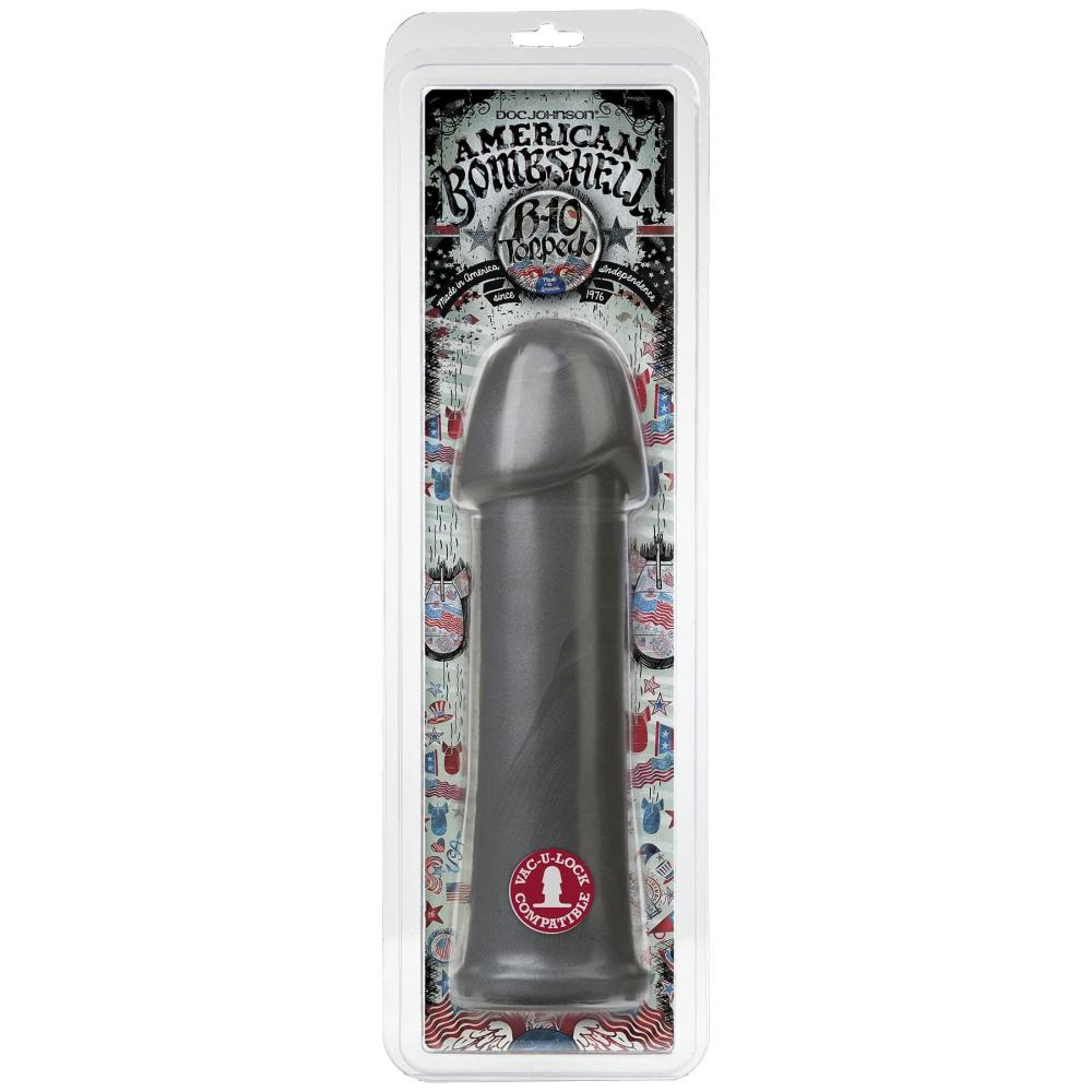 Торпеда для бойових дій! Рекомендуємо досвідченим поціновувачам потужного проникнення купити дилдо American Bombshell — B-10 Torpedo — Gun Metal довжиною 25,1 см і діаметром 6,4 см. U-Lock.