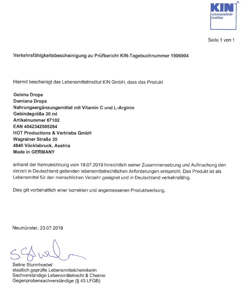 Water, Alcohol (Ethanol), Ascorbic Acid, Humectant E422, L-Arginine, Preservative E211, E202, Punica Granatum Fruit Extract, Turnera Diffusa Leaf Extract